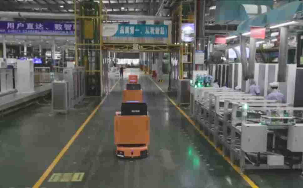 为车载冰箱物流配送打造的智能解决方案,,,包含产中物流通过潜伏举升AMR搬运至线边,,产后成品物流智能仓储,,,流程包含产中物流智能齐套入库,,线边安灯叫料AMR智能配送至线边,,,成品入库、、、、出库,,,,通过无人堆高车机器人,,,智能仓储管理替代人工作业管理,,实现更高存储、、、更高效率、、、更具柔性化的解决方案。。。。